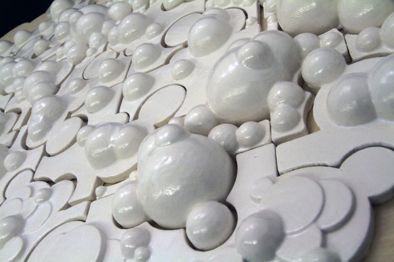 Phase 1 of Madam's Digital Ceramics course at the AA just concluded with a final presentation last wednesday (see here for the page @Madam). Each student fabricated a 1:1 section of a ceramic wall, from computer design, through the whole process of milling of the negative mold, repeated casting, glazing, firing, and eventual assembly of their piece, including the design and implementation of a mechanical, and preferably removable ad adjustable system of attachment.